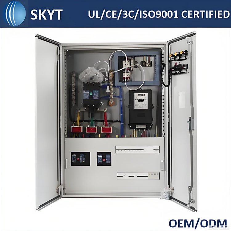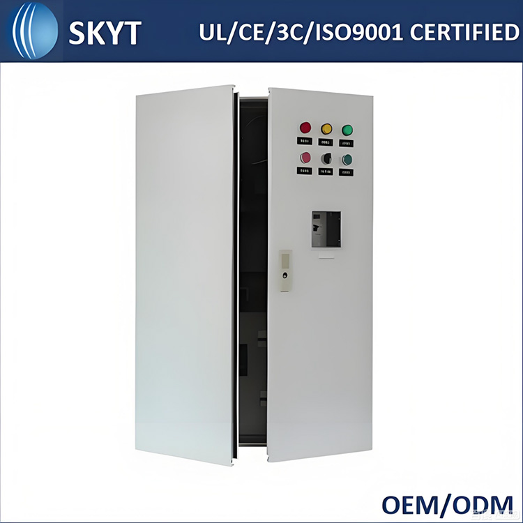 SKYT:n ohjaussähköinen metallikaappi on varustettu itsenäisesti kehitetyillä ohjaimilla, jotka on valmistettu 3mm paksuisista korkealaatuisista kylmävalssatuista teräslevyistä, joilla on vakaa suorituskyky, moninkertainen turvallisuussuoja ja sopiva voimalaitoksiin, teollisuuteen, älykkäisiin tuotantolinjoihin ja muihin skenaarioihin. Se on mielenrauhan valintasi.